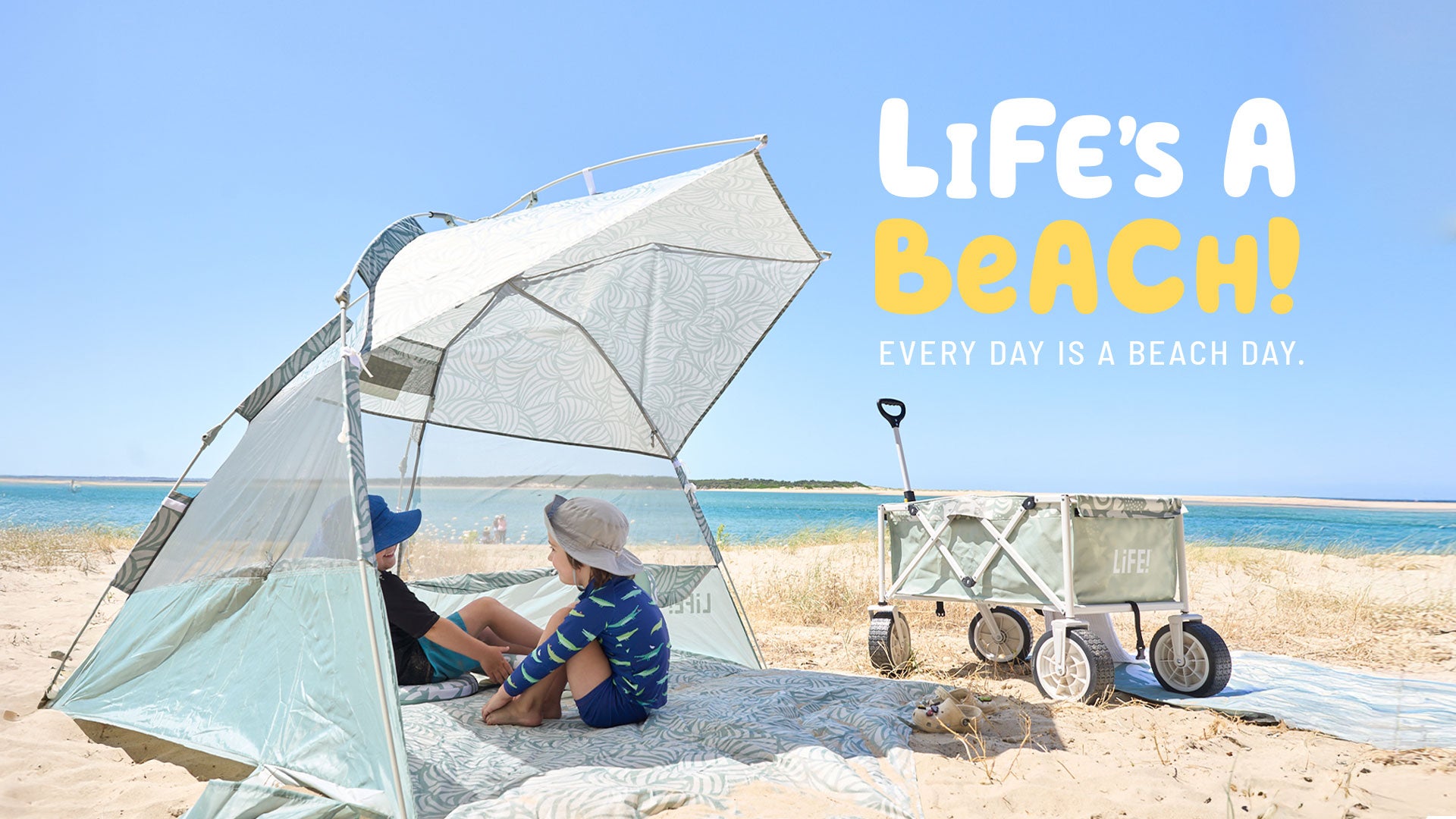 The perfect companion for sunny days at the beach, our shelters are compact for easy storage and stashing in the car. Each Shelter comes ready for adventure in a handy matching carry bag.